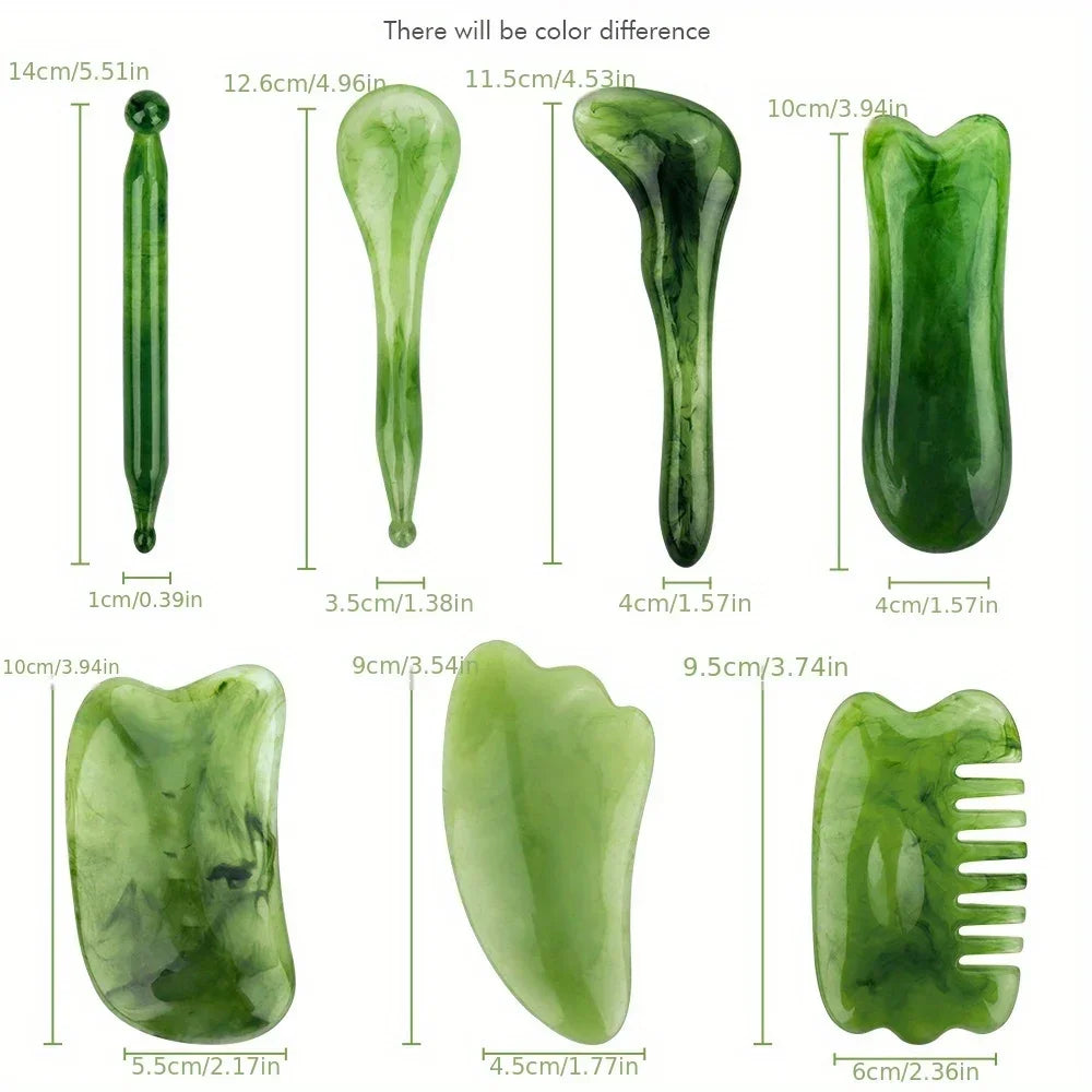 Le Coffret Guasha Énergétique LUMIA™ est un ensemble complet de 7 outils de massage en résine naturelle, conçus pour les soins du visage, du cou et du dos.